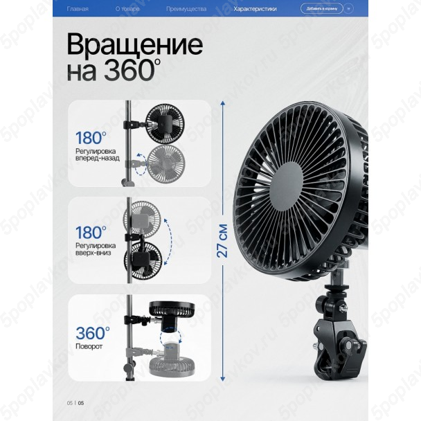 - Поворотный механизм на 360: направляйте поток воздуха точно на себя.