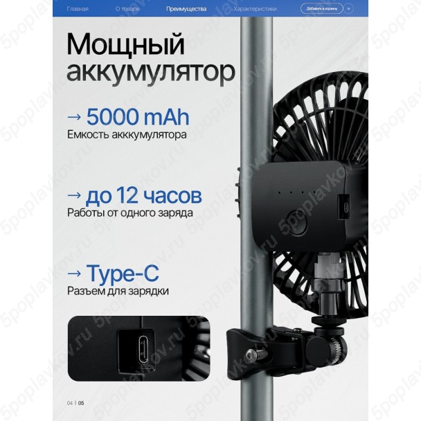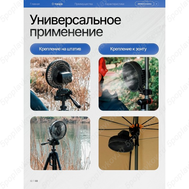 Этот переносной вентилятор создан для активного отдыха. Он станет отличным туристическим вентилятором, надежным помощником на пикнике и лучшим подарком для мужчин и женщин, которые ценят комфорт в летнюю жару.