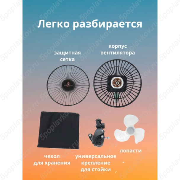 Представляем вам универсальный портативный аккумуляторный вентилятор повышенной мощности. Это незаменимый летний аксессуар, который превратит душный день на пляже или рыбалке в комфортный отдых. Благодаря надежному креплению, его легко зафиксировать на стойке зонта, штативе (треноге) или переходнике рыболовного ящика (кресла).